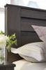 Priced to entice and styled to impress, this king/California king panel headboard pairs urban sophistication with a decidedly relaxed air. It’s got the crisp, clean lines of a contemporary piece, complemented with the earthy feel of a dark charcoal finish. Sleek in its simplicity, it suits your desire for fresh bedroom style with essential function. Made with engineered wood (MDF/particleboard/plywood) and decorative laminate for the right balance of affordability and durability Dark charcoal finish over replicated oak grain Decorative laminate replicates natural or man-made material surfaces with consistent color, pattern and texture ¼" bolts are needed to attach headboard to existing bed frame Assembly required Estimated Assembly Time: 5 Minutes