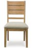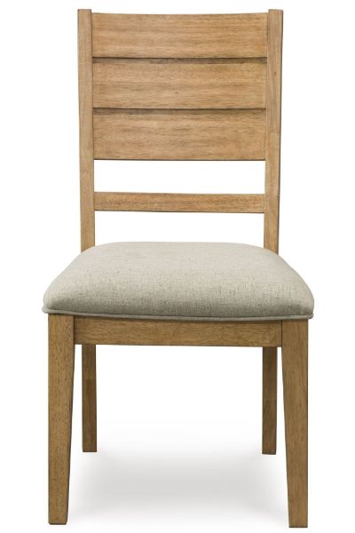 Add exceptional modern farmhouse appeal to your eating and gathering space with this dining side chair. It's sturdy yet charmingly simple, with a nod to mid-century design. A light wood tone and planking details enhance its rich natural beauty, while the upholstered seat sports an inviting neutral fabric. This casually delicious piece is right at home wherever and whenever you need it. Made with solid wood frame and laminated solid hardwood (or LVL) components Light wood-tone finish Foam cushion Gray upholstery Legs with adjustable levelers Assembly required Estimated Assembly Time: 15 Minutes