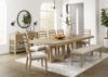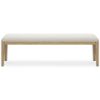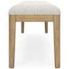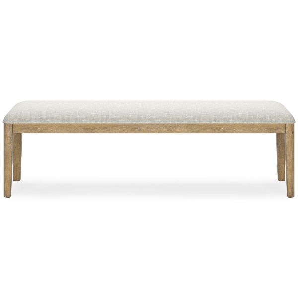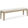 This dining bench's classic yet contemporary good looks are hard to deny. Its softly cushioned seat in a woven fabric adds a comfortably cozy dimension to everyday seating or when guests gather. With a light oak finish and wire-brushed wood grain texture, this bench lends an organic appeal to your delicious dining space ... or wherever family and guests gather. Made with wood Light oak finish with light wire-brushed wood grain texture Woven polyester upholstery Foam cushion Assembly required Estimated Assembly Time: 15 Minutes