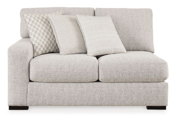 This left-arm facing loveseat is made with Next-Gen Nuvella (polyester) upholstery. Pairs with other items in the series to make a sectional.