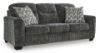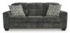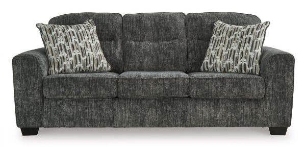 This sofa speaks to those drawn to fresh, contemporary style with richly neutral appeal. Subtle and sophisticated, the plush upholstery and dark tri-block legs are a natural complement for so many color schemes. Two accent pillows make the seating even more welcoming. Curling up on this sofa to enjoy a night in is never out of the question. Corner-blocked frame Attached backs and loose seat cushions High-quality foam cushions wrapped in poly fiber Accent pillows included Pillows with soft polyfill Polyester upholstery Exposed feet with faux wood finish Platform foundation system resists sagging 3x better than spring system after 20,000 testing cycles by providing more even support Smooth platform foundation maintains tight, wrinkle-free look without dips or sags that can occur over time with sinuous spring foundations