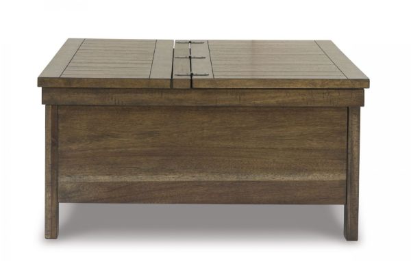 This lift-top coffee table might appear simple at first sight. But a closer look reveals beauty in the details. With a plank-effect tabletop, a tobacco brown finish and antiqued bronze-tone hardware, it’s simply beaming with charm. A handy lift top makes it easier than ever to eat, work or play from the comfort of your sofa. Crafted for form and function, this table will serve you well for years to come. Made with acacia wood solids, veneer and MDF substrate Tobacco brown finish Antiqued bronze-tone hardware Lift-top design Assembly required Estimated Assembly Time: 30 Minutes