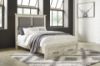 Wispy white finish over replicated Oak grain with authentic touch. Large scaled dark colored handles. Cases feature a framed front and pilasters. All panel headboards (53,57,58,87) feature decorative matte black sconce lights. Side roller glides for smooth operating drawers. All panel headboards (53,57,58,87) can attach to a bolt-on metal bed frame B100-31 or B100-66 respectively. Drawers lined with a faux linen laminate for a clean, finished look. Slim profile dual USB chargers located on the back of the night stand top and the side of the headboards. All side storage options (50,150,60,160) requires the use of the B100-11, B100-12, B100-13 or the B100-14 roll slats. All under bed storage units (50,150,60,160) accommodates to 11"W x 11"D x 11"H cube storage bins. All beds have a panel footboard (52,84,54,56) and storage footboard option (52S,84S,54S, 56S). Queen (157) and king (158) upholstered panel headboards feature double upholstered pads with small nail tack details. All panel headboards (53,57,58,87,157,158) can attach to a bolt-on metal bed frame B100-31 or B100-66 respectively. Queen (157) and king (158) gray upholstered panel headboards are compatible with existing underbed storage options and footboards. Safety is a top priority, clothing storage units are designed to meet the most current standard for stability, ASTM F 2057 (ASTM International). Drawers extend out to accommodate maximum access to drawer interior while maintaining safety.