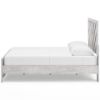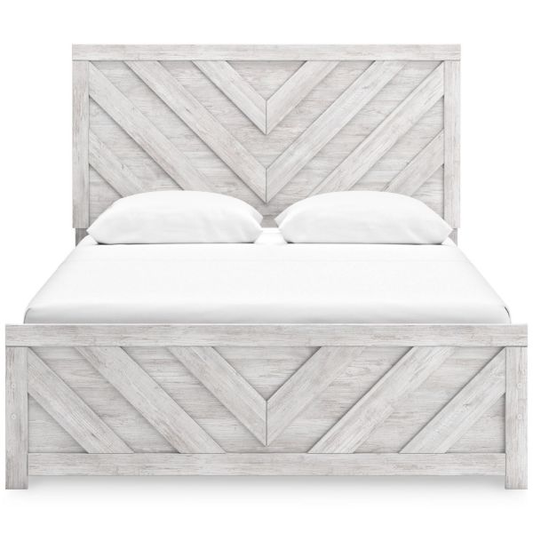 Charmingly designed, this queen panel bed embraces the aesthetics of countryside living and repurposes them for modern settings. Its whitewash paint, replicating the wear and tear of time, appeals to your love of vintage character. And a chic chevron pattern on the headboard and footboard keeps your bedroom effortlessly on trend. Includes panel headboard/footboard and rails Made with engineered wood (MDF/particleboard/plywood) and decorative laminate for the right balance of affordability and durability Whitewash replicated worn through paint with authentic touch Decorative laminate replicates natural or man-made material surfaces with consistent color, pattern and texture Foundation/box spring required, sold separately Mattress available, sold separately Minor assembly required Estimated Assembly Time: 25 Minutes