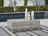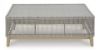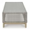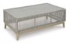 This coffee table invites your casual contemporary style outdoors. With its resin wicker in a chic neutral hue, it expertly marries refined design with durability. Breezy summer mornings and cold winter nights are made all the more enjoyable with a glass tabletop on hand to hold beverages, snacks and your latest poolside read. All-weather resin wicker over aluminum frame. Legs with wood-look painted finish. Tempered glass tabletop. Stainless steel hardware. Designed to withstand the harsh elements of the outdoors. Assembly required. Estimated Assembly Time: 30 Minutes.