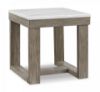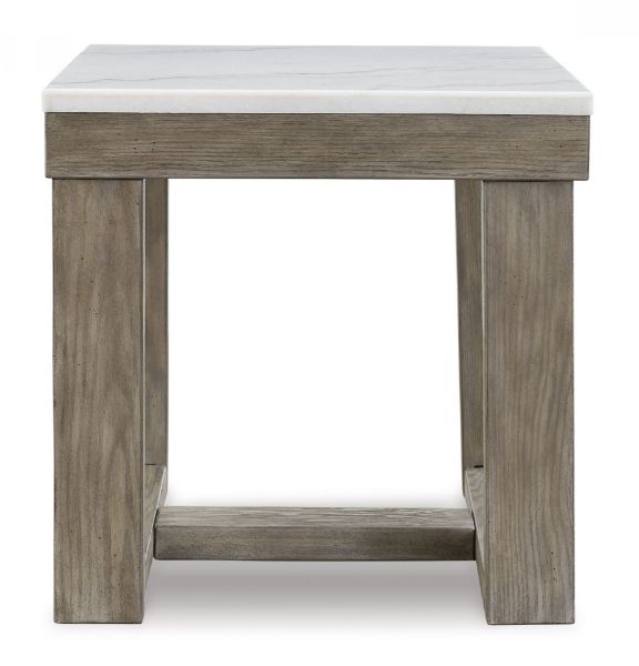 This square end table is simple in design but big on style. Finished with a trend-right grayish brown wood tone, its bold, blocky profile and natural marble top are timeless classic choices that work so well with a variety of settings. Adding to its beauty, the marble top's color variations, fissures, mineral deposits and veining are naturally formed and are not defects. Made with oak veneer and MDF substrate Grayish brown wood-tone finish Natural marble top Color variations, fissures, mineral deposits and veining in the marble top are naturally formed characteristics Assembly required Estimated Assembly Time: 30 Minutes