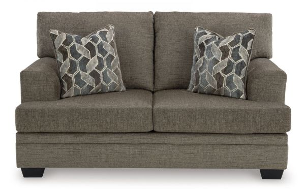 This loveseat feels every bit as good as it looks. Ultra-soft upholstery enhances your comfort, making it a delightful place to unwind. Whether you're enjoying a quiet evening alone or chilling with friends, this piece promises to be the perfect backdrop. Corner-blocked frame Reversible seat and attached back cushions High-quality foam cushions wrapped in poly fiber Polyester upholstery Accent pillows included Pillows with soft polyfill Exposed feet with faux wood finish Platform foundation system resists sagging 3x better than spring system after 20,000 testing cycles by providing more even support Smooth platform foundation maintains tight, wrinkle-free look without dips or sags that can occur over time with sinuous spring foundations