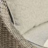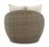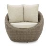 Set of 2 All-weather resin wicker handwoven over rust-free aluminum frame with durable powder coated finish Nuvella® Premium (solution-dyed polyester) high-performance fabric All-weather foam cushion core wrapped in soft polyester Stainless steel hardware Designed to withstand the harsh elements of the outdoors 360-degree swivel Clean fabric with mild soap and water, let air dry; for stubborn stains, use a solution of 1 cup bleach to 1 gallon water Imported fabric and fill Assembly required