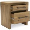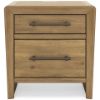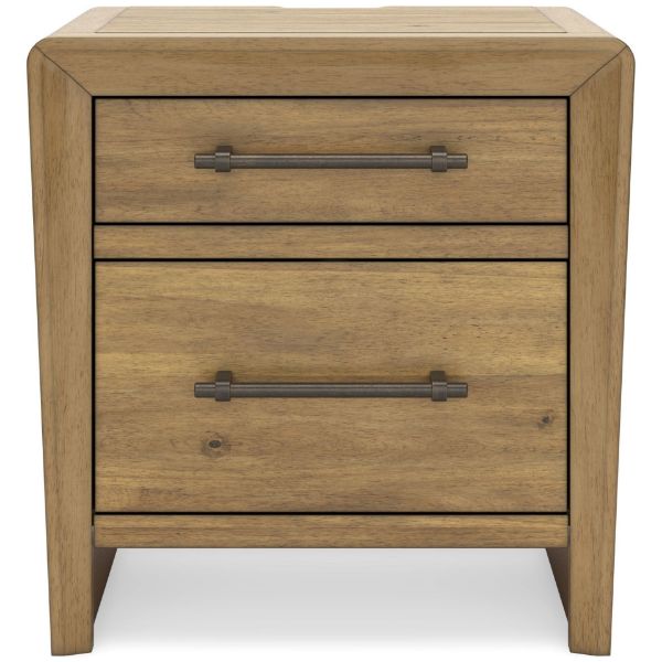 To you, simplicity is the ultimate form of sophistication. With this nightstand, you invest in making everyday life simply beautiful. Emphasizing the stunning look of natural materials, its two storage drawers are a warm and welcoming home for bedside essentials. Outlets and USB ports allow for effortless overnight charging. This nightstand balances quiet elegance and a fresh boho feel, with a tapered frame adding a forward-thinking take on contemporary design. Made with hardwood solids, acacia veneer and MDF substrates Finished in a light glazed brown wood tone that enhances the natural beauty of the acacia veneer Drawers with bar pulls 2 drawers with fully finished interior, dovetail construction and ball-bearing side glides (top drawer felt lined) Waterfall edges Tapered frame 110V power supply with dual USB charging ports Power cord included; UL Listed