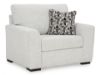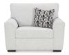 Offering plenty of comfy seating, this oversized chair appeals to your love of on-trend style and easy upkeep. Smartly designed for everyday use or accidental spills, the plush high-performance fabric is durable and washable. When it’s time to sit back and relax, this chair doesn’t disappoint. Corner-blocked frame Reversible seat and back cushions High-quality foam cushions wrapped in poly fiber Polyester upholstery Accent pillows included Pillows with soft polyfill Next-Gen Nuvella™ is a family-friendly fabric that is soft, easy to clean, stain-resistant and durable Easy-to-remove zippered covers for machine washing Clean fabric with mild soap and water, let air dry; for stubborn stains, use a solution of 4 oz. bleach to 28 oz. water Exposed feet with faux wood finish Platform foundation system resists sagging 3x better than spring system after 20,000 testing cycles by providing more even support Smooth platform foundation maintains tight, wrinkle-free look without dips or sags that can occur over time with sinuous spring foundations