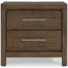 This nightstand sits comfortably at the intersection of modern lodge and farmhouse aesthetics. Your warm and welcoming disposition is reflected in the charming architectural elements and light brown glazed finish. Even with its poise, the nightstand remains practical. Included USB ports keep you charged up for late-night scrolling, defining your bedroom with reliable function and style. Made with hardwood solids, hickory veneer and MDF substrates. Light brown glazed finish to enhance the natural wood grain characteristics. Handles with aged pewter-tone finish. 2 drawers with fully finished interior, dovetail construction and ball-bearing side glides. 110V power supply with dual USB charging ports. Power cord included; UL Listed.