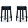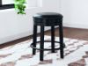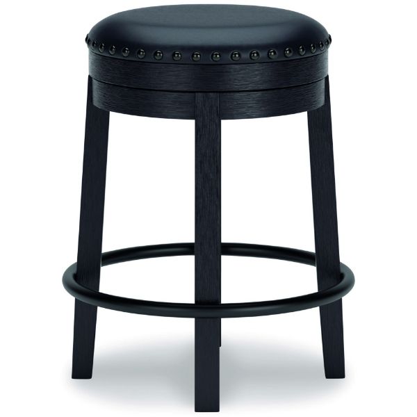 A touch of rustic-industrial style is such a fashion-forward choice, and this counter height bar stool doesn’t disappoint. Its smooth swivel motion adds function, while the nailhead trim brings effortless style. Black faux leather upholstery keeps things edgy. Set this stool by the kitchen bar for a visually intriguing mix of new and old. Made with solid wood frame Black finish Metal footrest Black faux leather upholstery Nailhead trim Assembly required Estimated Assembly Time: 15 Minutes
