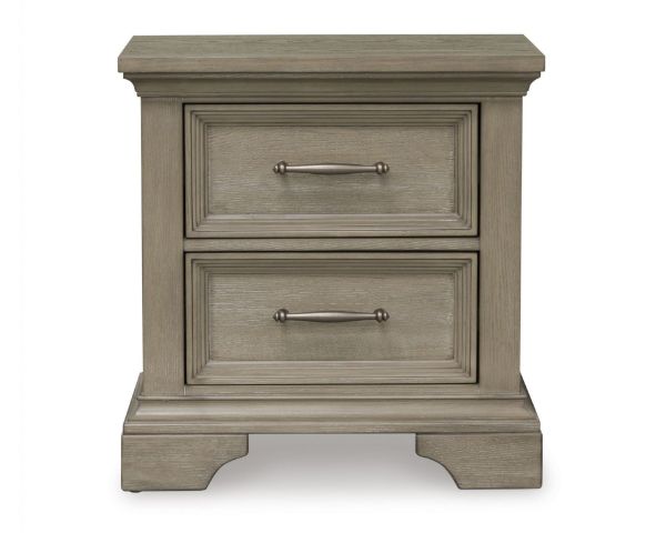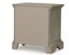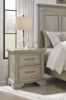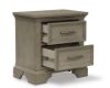 Indulge in relaxed refinement with this nightstand. Its art deco-inspired moulding and casual grayish brown finish exemplify an updated take on traditional styling. Spacious drawers with bronze-tone pulls offer plenty of storage for remotes, books, sleep masks—your call. Inspired by the past and reimagined for the present, this nightstand is ready to embrace the demands of everyday life. Made with pine solids, oak veneer and MDF substrates Light grayish brown finish with white wax wood grain texture 2 drawers with fully finished interiors, dovetail construction and heavy duty ball-bearing side glides (top drawer felt lined) Pulls with light bronze-tone finish Estimated Assembly Time: 15 Minutes