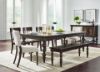 For those who appreciate a traditional aesthetic with understated elegance, the Veramond dining bench brings home a feast for the senses. Its rich brown walnut finish merges seamlessly with ball ornamental legs for a richly classic appeal. What a deliciously timeless choice. Made with solid wood frame Rich brown walnut finish with wood grain texture Made with oak veneer, MDF substrate and cast resin components Legs with adjustable levelers Assembly required Estimated Assembly Time: 15 Minutes