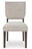 For those who appreciate a traditional aesthetic with understated elegance, this dining side chair brings home a feast for the senses. Its rich brown walnut finish merges seamlessly with the neutral textured upholstery and tufted button accents for a richly classic appeal. Integrated adjustable levelers keep the chair steady for a comfortable dining experience. What a deliciously timeless choice. Made with solid wood frame Rich brown walnut finish with wood grain texture Foam cushion Gray polyester upholstery Legs with adjustable levelers Assembly required Estimated Assembly Time: 15 Minutes